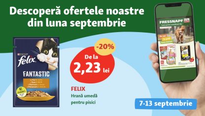 Avem vești grozave pentru toți iubitorii de animăluțe! În data de 19 octombrie vom deschide un nou magazin Fressnapf la Craiova! Animăluțul tău merită tot ce este mai bun. Indiferent dacă are blană, solzi sau pene, la noi găsești toate cele necesare pentru îngrijirea lui. Alege dintr-o selecție largă de branduri premium, gustări delicioase, jucării […]