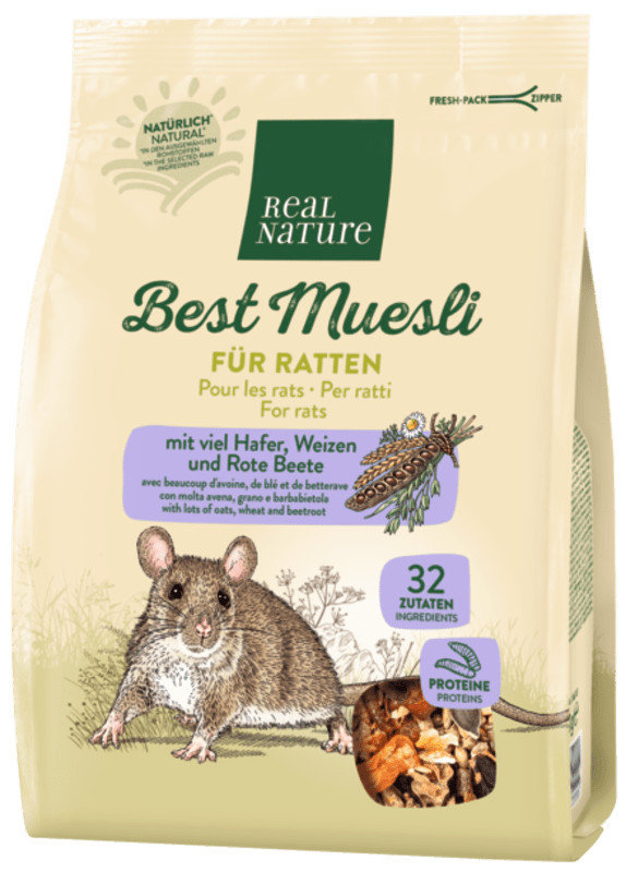 Această formulă, creată exclusiv din ingrediente naturale, aduce varietate în alimentația zilnică și oferă stimulare prin diversitatea componentelor. Ingredientele precum ovăzul, grâul și sfecla roșie provin din zonele de origine ale șobolanilor și susțin o alimentație corespunzătoare. Extractul de Yucca schidigera poate ajuta la reducerea mirosurilor neplăcute, iar conținutul de proteină animală poate contribui la uzura optimă a dinților.