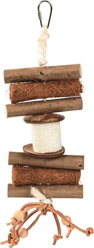 Este ideală ca jucărie interactivă și se atașează ușor datorită cârligului. Este fabricată din materiale 100% naturale și, prin urmare, este potrivită și pentru ros. Lemnul folosit este certificat FSC și oferă o activitate adaptată speciei.