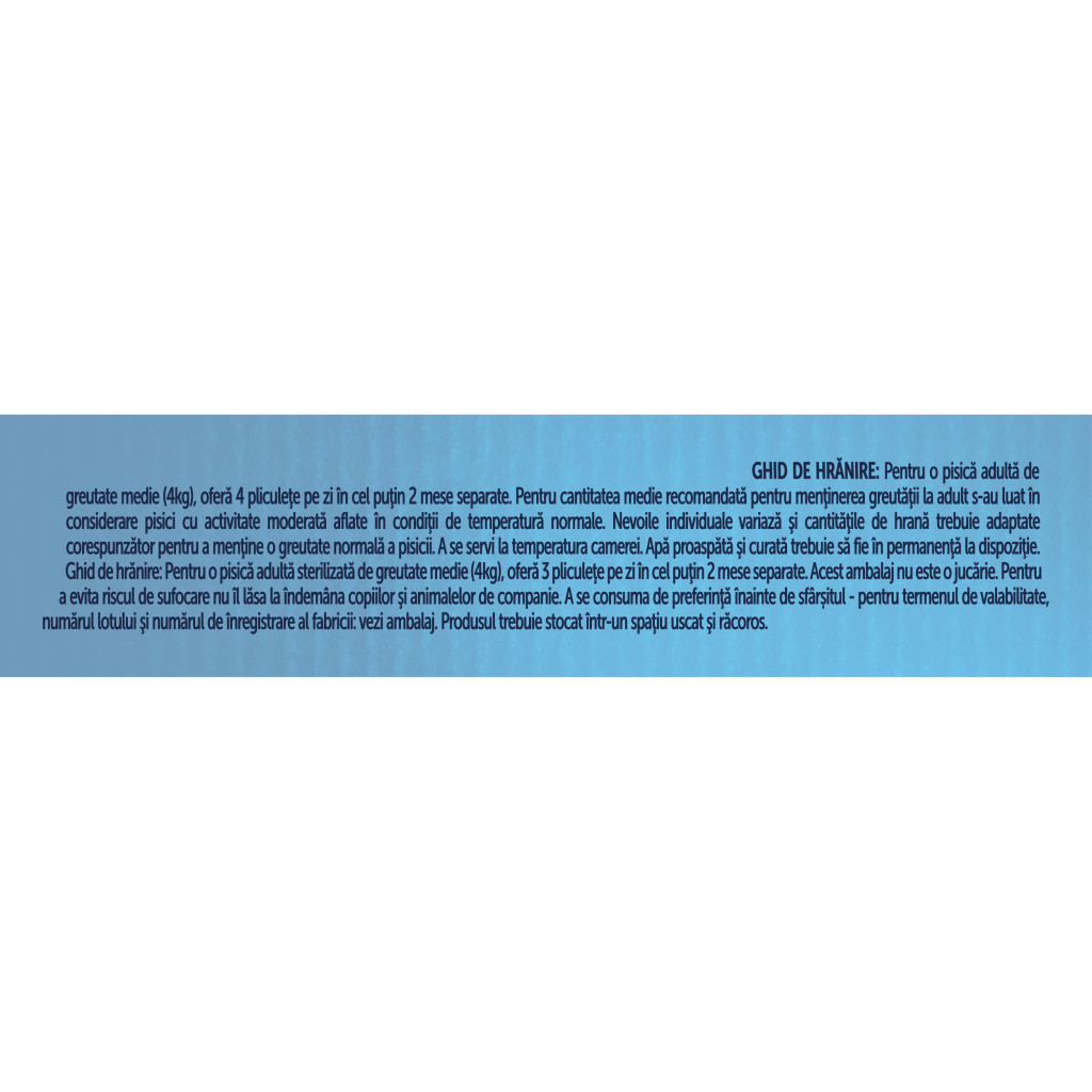 Contine surse de acizi grasi esentiali Omega 6 si o combinatie echilibrata de minerale si vitamine, pentru a sustine vitalitatea si pofta de ghidusii a pisicii tale!