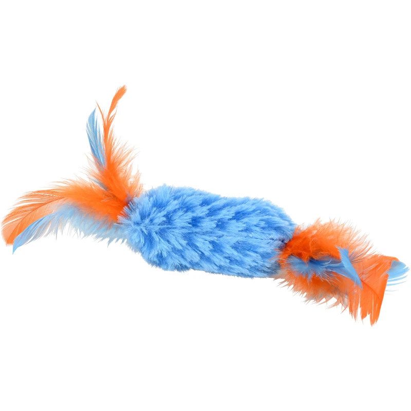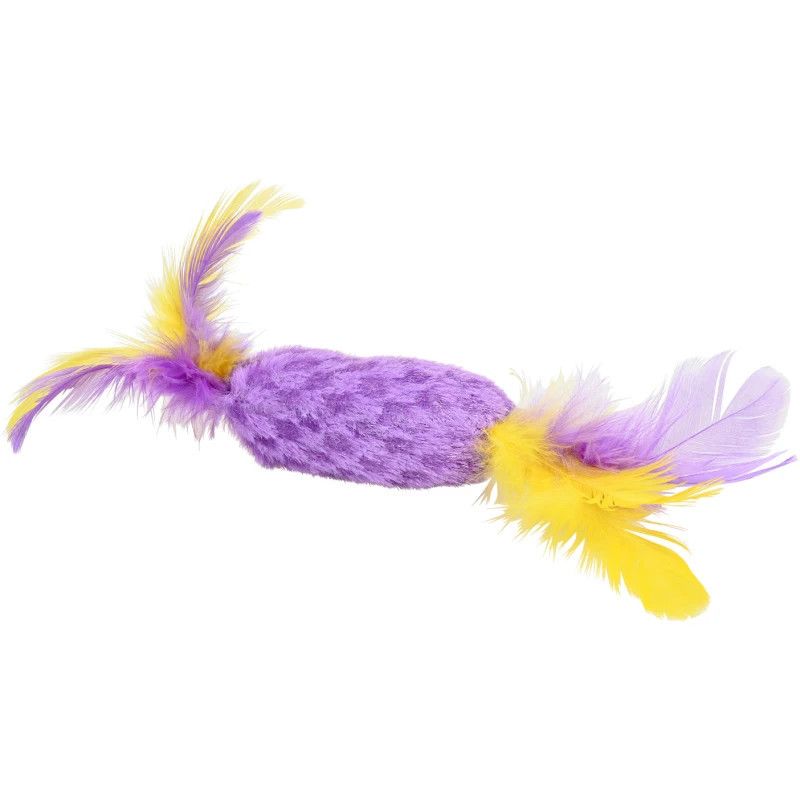 Jucăria este umplută cu iarba-mâței de calitate, pe care pisicile o adoră. Forma de bomboană și penele atrăgătoare o transformă într-o jucărie irezistibilă, care stimulează simțurile și instinctul de vânătoare. Și partea cea mai bună? Este disponibilă în patru culori vesele, iar culoarea livrată va fi aleasă aleatoriu. O mică surpriză atât pentru dumneavoastră, cât și pentru pisică.