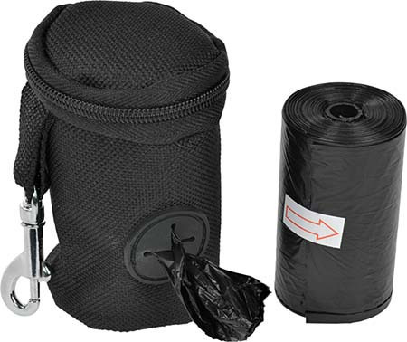 Dispenserul pentru săculeți de excremente are un diametru generos, care permite derularea ușoară a săculeților, chiar și la începutul unei role noi. Carabina integrată permite atașarea rapidă pe lesă, la breloc sau de gaica curelei.