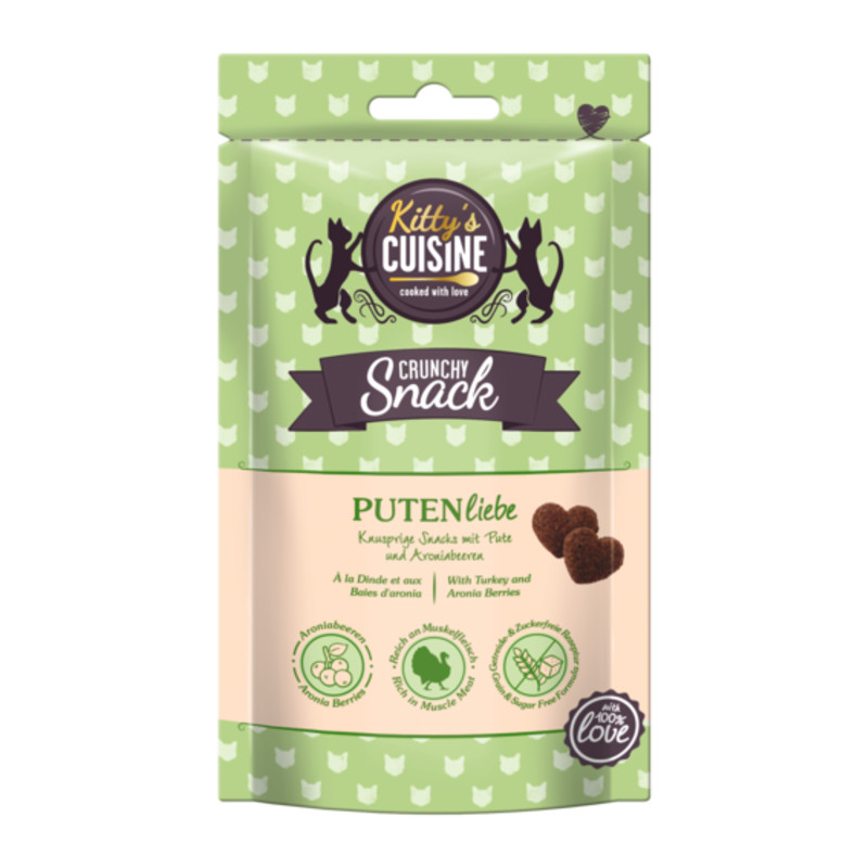 Ambalajele Kitty's Cuisine, realizate cu grijă și atenție la detalii, oferă o listă informativă a ingredientelor de înaltă calitate – precum și mențiunea celei mai importante și irezistibile „ingrediente”: 100% dragoste.