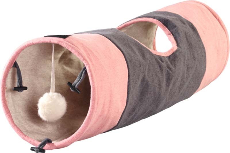 Tunelul de joacă oferă pisicii posibilitatea de a se juca, de a se ascunde sau de a se relaxa în voie. Materialul ușor și rezistent din poliester, împreună cu folia foșnitoare integrată, stimulează instinctele naturale ale felinei și o încurajează să exploreze și să fie activă.