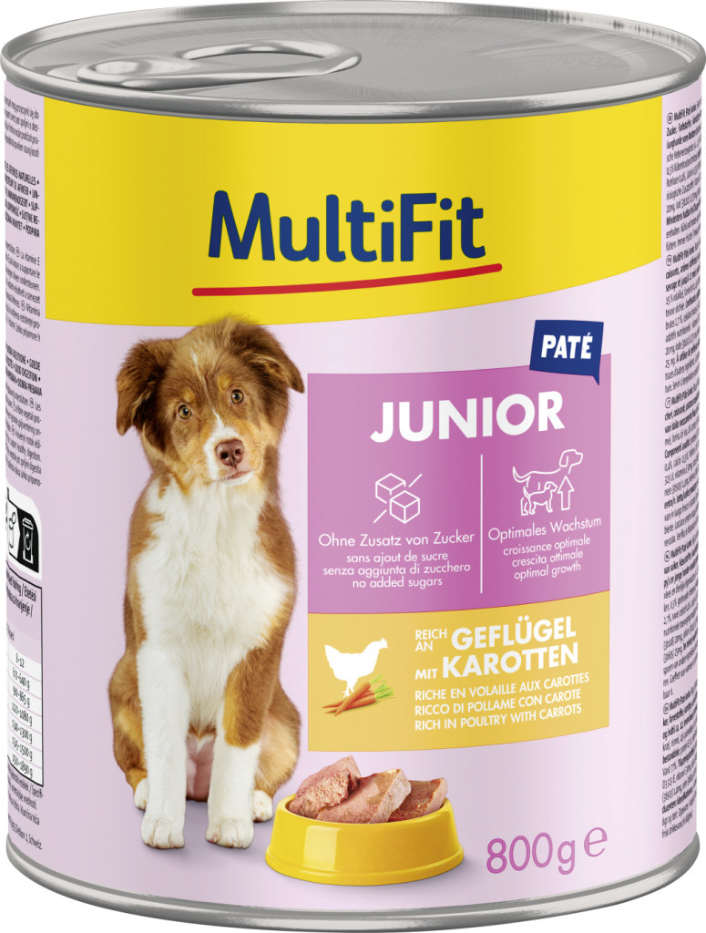 Compoziție: carne și subproduse de origine animală (60%, din care pasăre 15%), cereale, legume (morcovi 4%), uleiuri și grăsimi (ulei de floarea-soarelui 1%), subproduse de origine vegetală (felii de sfeclă de zahăr 0,5%), minerale.
