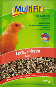 Compoziție: semințe 73,2% (rapiță 13,2%, semințe de niger 13%, semințe de plantain 11%, mei pentru canari 10%, semințe de susan 10%, semințe de cânepă 5%, mac 4%, semințe de cicoare 4%, semințe de pin 3%); nuci 14% (miez de arahide 14%); cereale 4,6% (mei 2,2%, grâu 1,6%, porumb 0,8%, orez 0,01%); fructe 4% (fructe de sorb 1,3%, fructe de ienupăr 1,3%, fructe de soc 1,3%); minerale 1,8% (carbonat de calciu 1,8%); derivați de origine vegetală ((melasă de sfeclă/zahăr) 0,1%); ouă și produse din ou (ou întreg 0,05%); miere 0,04%; uleiuri și grăsimi (ulei de rapiță 0,04%); drojdii (beta-glucan 160 mg/kg).