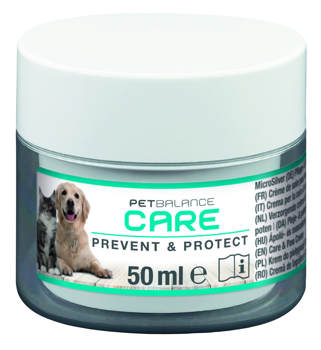 Crema MicroSilver pentru îngrijire și lăbuțe oferă protecție și calmare pentru zonele cu cruste superficiale, lăbuțele iritate sau intens solicitate, fiind ideală și în sezonul rece. Formula cu Micro-Silver BG™, zinc, pantenol și hamamelis ajută la liniștirea pielii sensibile și sprijină procesul natural de regenerare.
