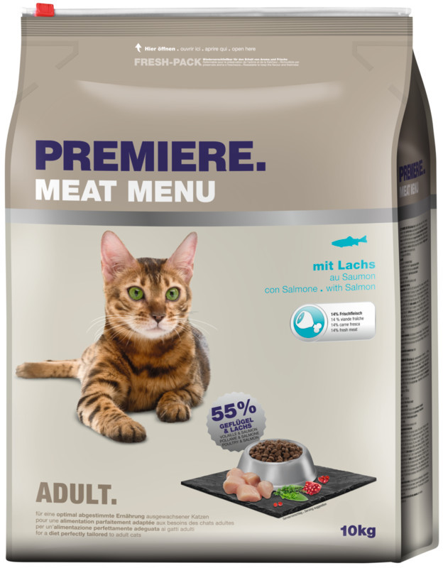 Aliment complet (nu necesită hrănire suplimentară). Oferiți întotdeauna apă proaspătă. Când schimbați hrana, asigurați-vă că înlocuiți treptat hrana anterioară cu hrana PREMIERE Adult (pe o perioadă de aproximativ o săptămână). Acest lucru asigură o digestie optimă și acceptarea noii hrane în perioada de tranziție.