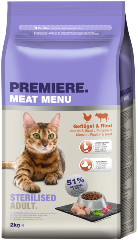 Ingrediente: 28% carne de pasăre deshidratată, făină de cartofi, 14% carne proaspătă de pasăre (inclusiv 4% carne de pui), 14% orez, grăsimi animale, 4,1% grăsime de pasăre, 4% proteine de vită, 2,5% celuloză pudră, 2,5% tăiței de sfeclă deshidratați, 1,1% hidrolizat de ficat de pasăre, 1% drojdie de bere, 0,95% semințe de in, 0,5% ulei de somon, 0,45% clorură de potasiu, 0,19% cicoare (cu 0,1% inulină), 0,1% Yucca schidigera, 0,04% rodie, 0,01% extract din sâmburi de struguri, 0,01% ulei de floarea-soarelui, precum și oregano, pătrunjel, măghiran, salvie și cimbru (câte 0,008% fiecare).