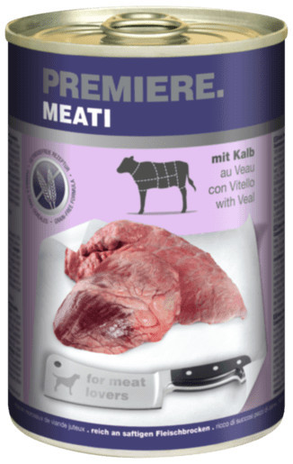 Ingrediente: 71% carne și subproduse de origine animală (din care 10% inimă de vițel, 10% plămân de vițel, 10% stomac de vițel), minerale, uleiuri și grăsimi (0,2% ulei de in), subproduse de origine vegetală (0,2% pulpă de sfeclă). 15% conținut de carne fără grăsimi.