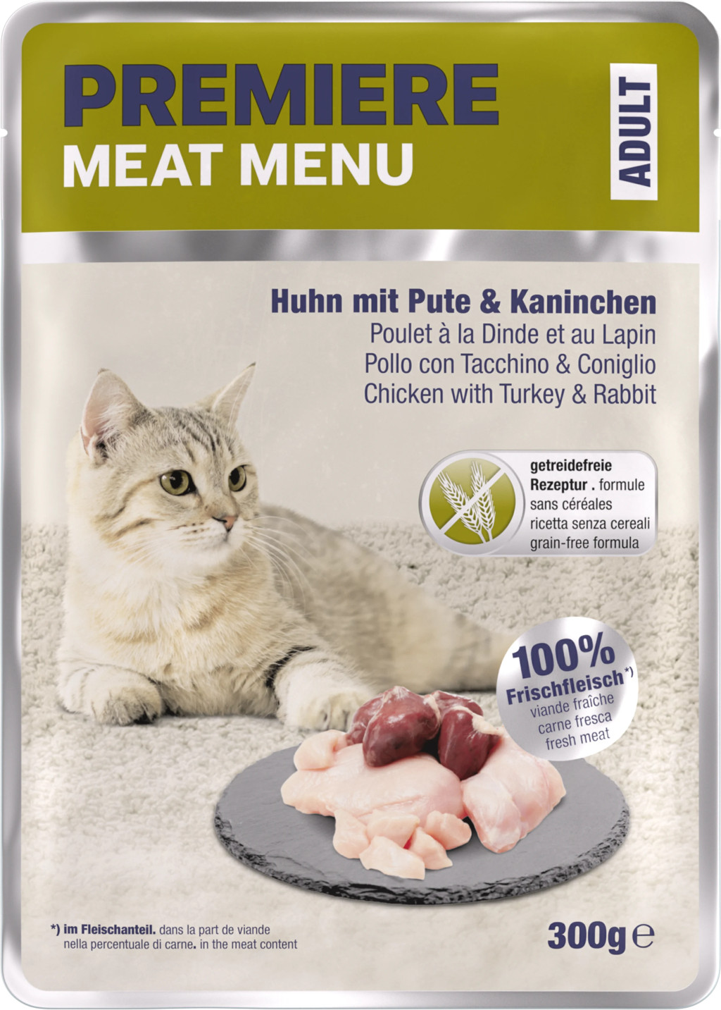 Este destinată unei alimentații adaptate nevoilor naturale ale pisicilor și asigură o dietă variată cu adaos de taurină valoroasă. Beneficiați de toate avantajele hranei PREMIERE Meat Menu. Hrana conține 100% carne proaspătă în proporția de carne, inclusiv 15% carne musculară, care oferă un aport suplimentar de proteine. Rețeta este fără cereale și nu conține soia sau zahăr adăugat. Este îmbogățită cu taurină valoroasă și nu conține arome artificiale adăugate, păstrând astfel gustul natural. O adevărată delicatesă pentru toți iubitorii de carne cu patru picioare.