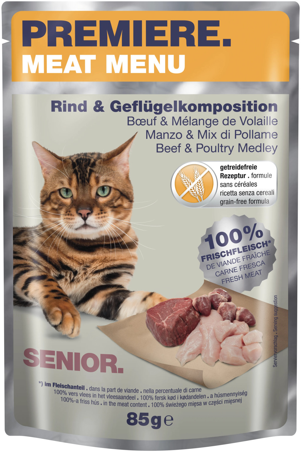Compoziție: 32% bovine (inimi, plămâni, ficat, carne), 16% curcan (pipote, gâturi, carne), 17% pui (pipote, gâturi, carne), 6% inimi de rață, substanțe minerale, produse derivate de natură vegetală (0,4% tărâță de psyllium), uleiuri și grăsimi (0,2% ulei de somon), procentul de carne musculară 15%.