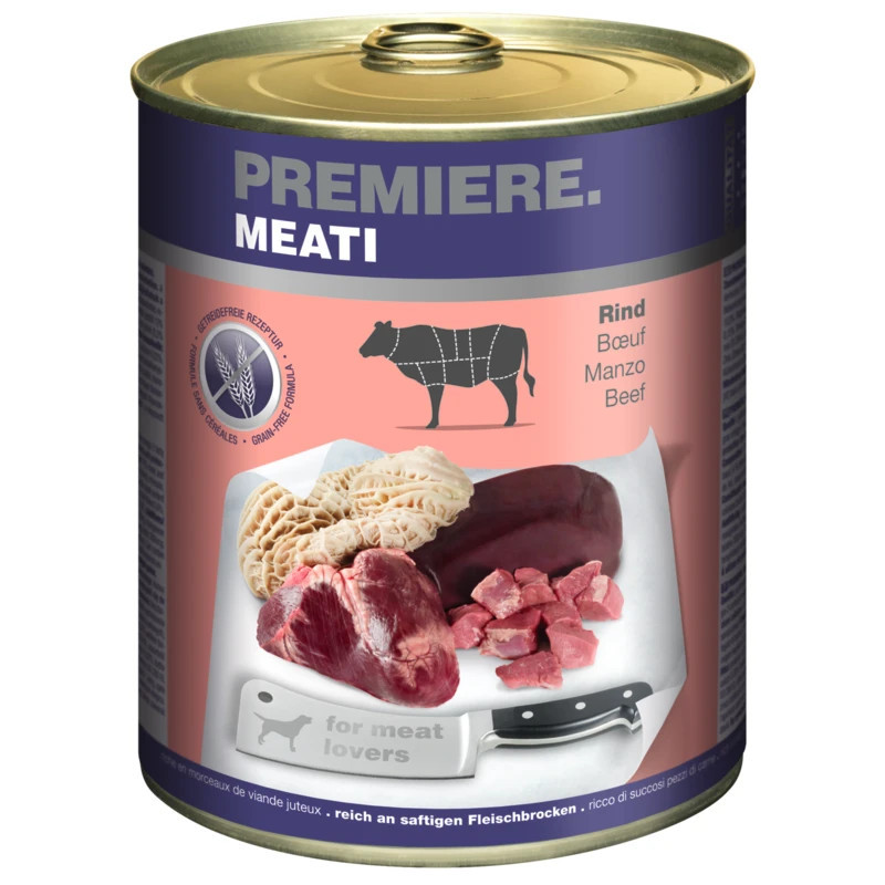 Ingrediente: 71% carne și subproduse de origine animală (din care 12% vită, 6% inimă de vită, 6% ficat de vită, 6% tripă de vită), minerale, uleiuri și grăsimi (0,2% ulei de in), subproduse de origine vegetală (0,2% pulpă de sfeclă). 15% conținut de carne fără grăsimi.