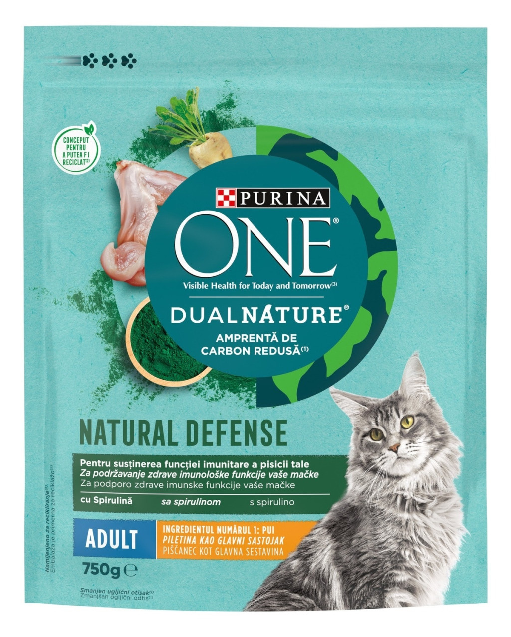 PURINA ONE® DualNature® oferă nutriție adaptată pentru pisica ta, conform expertizei noastre științifice și care este creată cu ingrediente naturale. Dezvoltată de veterinarii și nutritioniștii Purina®, este formulată cu pui fiert în aburi pentru a păstra toți nutrienții esențiali de care are nevoie pisica ta. Formulată cu spirulină pentru a ajuta la susținerea sănătății funcției imunitare a pisicii tale. Spirulina este un ingredient natural, o algă verde - albăstruie cunoscută pentru profilul unic și nutrițional robust care contribuie la multe beneficii pentru sănătate.