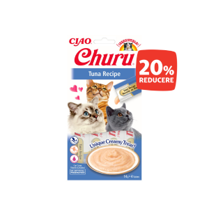 * Oferta este valabilă în perioada 1-30 noiembrie la gustările Churu pentru pisici. Oferta se referă la prețul de vânzare recomandat și nu include alte promoții sau reduceri. Reducerea se aplică direct în magazin.