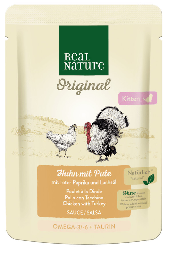 Ingrediente: pui (inimă, carne, pipotă, gât) 45%, curcan (pipotă, gât) 5%, ardei roșu 5%, ulei de floarea soarelui 2,5%, amidon de tapioca 2%, minerale 1%, ulei de somon 0,1%.
