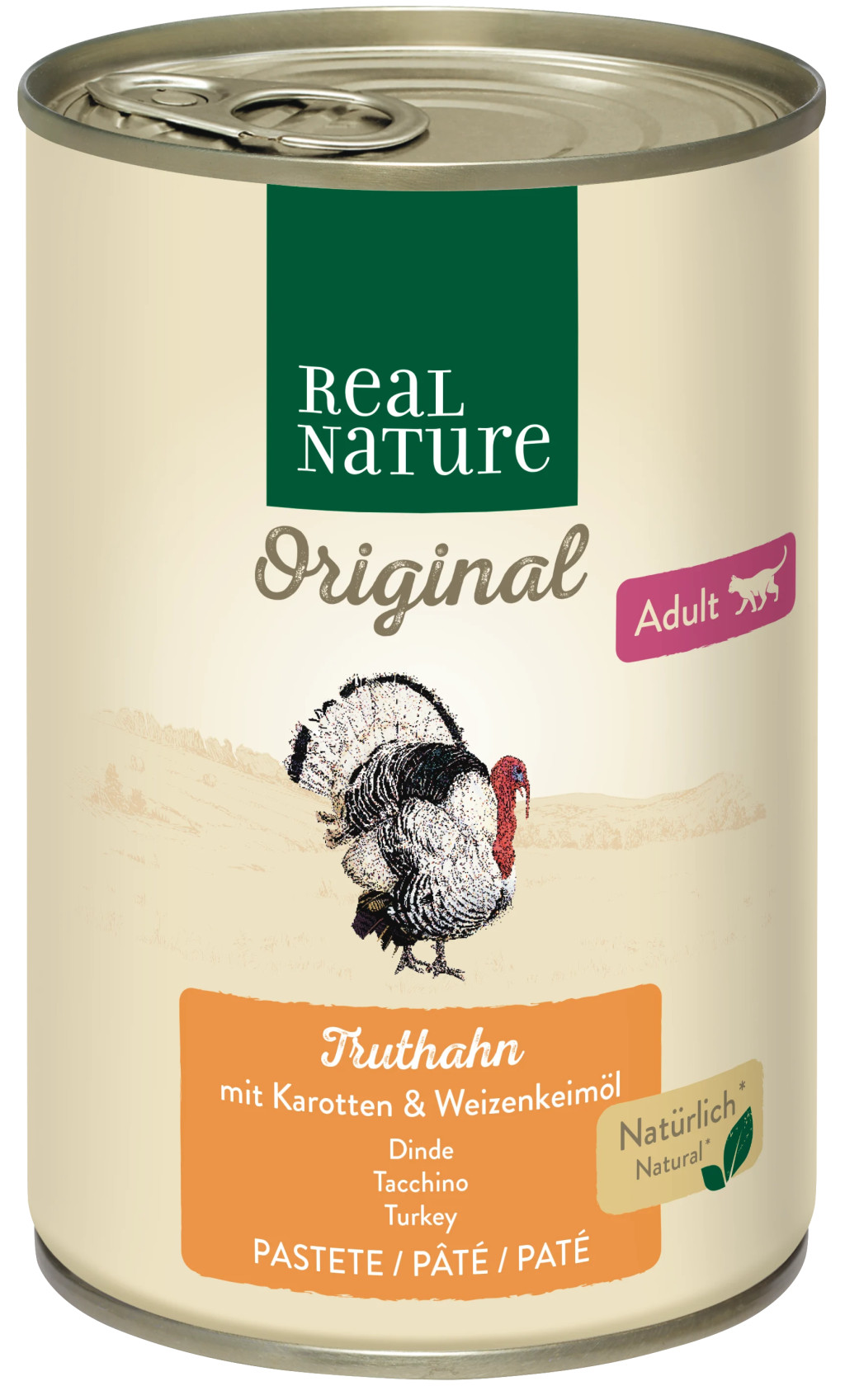Compoziție: 66% curcan (inimi, carne, ficat, pipote, gâturi, grăsime), 5% morcovi, 1% substanțe minerale, 0,5% ulei de germeni de grâu..Poate conține urme de alte ingrediente.