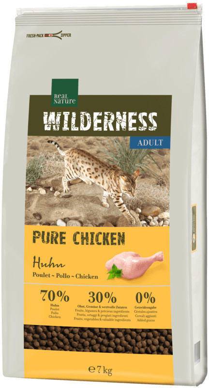 Ingrediente: proteină de pui (35,6%), carne proaspătă de pui (22%), fulgi de cartofi (13,6%), grăsime de pui (6,9%), mazăre (5,9%), amidon de cartofi (4,5%), ficat de pui proaspăt (3%), proteină de pui hidrolizată (3%), mere (2%), ulei de floarea soarelui (0,7%), spanac (0,5%), semințe de in (0,5%), clorură de potasiu (0,25%), insulină de cicoare (0,2%), pereți celulari de drojdie (0,2%, corespunde la 0,04% oligozaharide manan), clorură de sodiu (0,12%), rozmarin (0,04%), mentă pentru pisică (0,04%), pătrunjel (0,04%), urzici (0,04%), mușețel (0,04%), coji de semințe de psyllium (0,03%), yucca schidigera (0,02%), făină de alge marine (0,01%, ascophyllum nodosum).