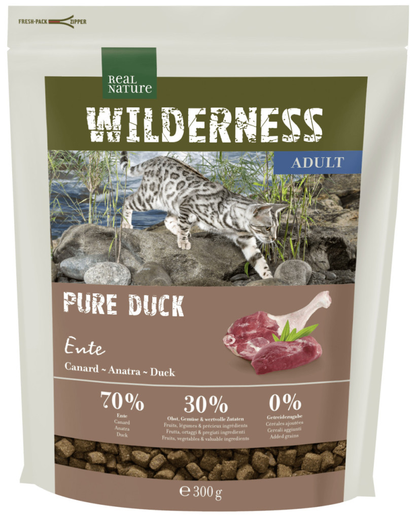 Ingrediente: carne proaspătă de rață (40%), proteină de rață (28%), fulgi de cartofi (19,5%), grăsime de rață (2%), tescovină de mere (2%), semințe de in (2%), drojdie de bere (2%), lignoceluloză (1,4%), tescovină de morcovi (0,5%), păstârnac (0,2%), inulină de cicoare (0,2%), ulei de somon (0,15%), ulei de floarea-soarelui (0,1%), coada șoricelului (0,03%), păpădie (0,03%), rădăcină de păpădie (0,03%), mușețel (0,03%), urzică (0,03%), frunze de lambrișă (0,03%), sunătoare (0,03%).