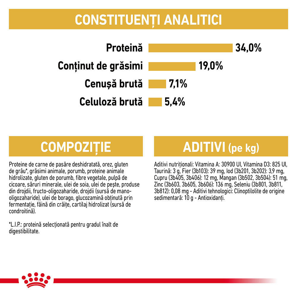 Sprijină tonusul muscular, menține un sistem osteo-articular puternic și contribuie la sănătatea mușchiului cardiac al pisicilor adulte din rasa British Shorthair.