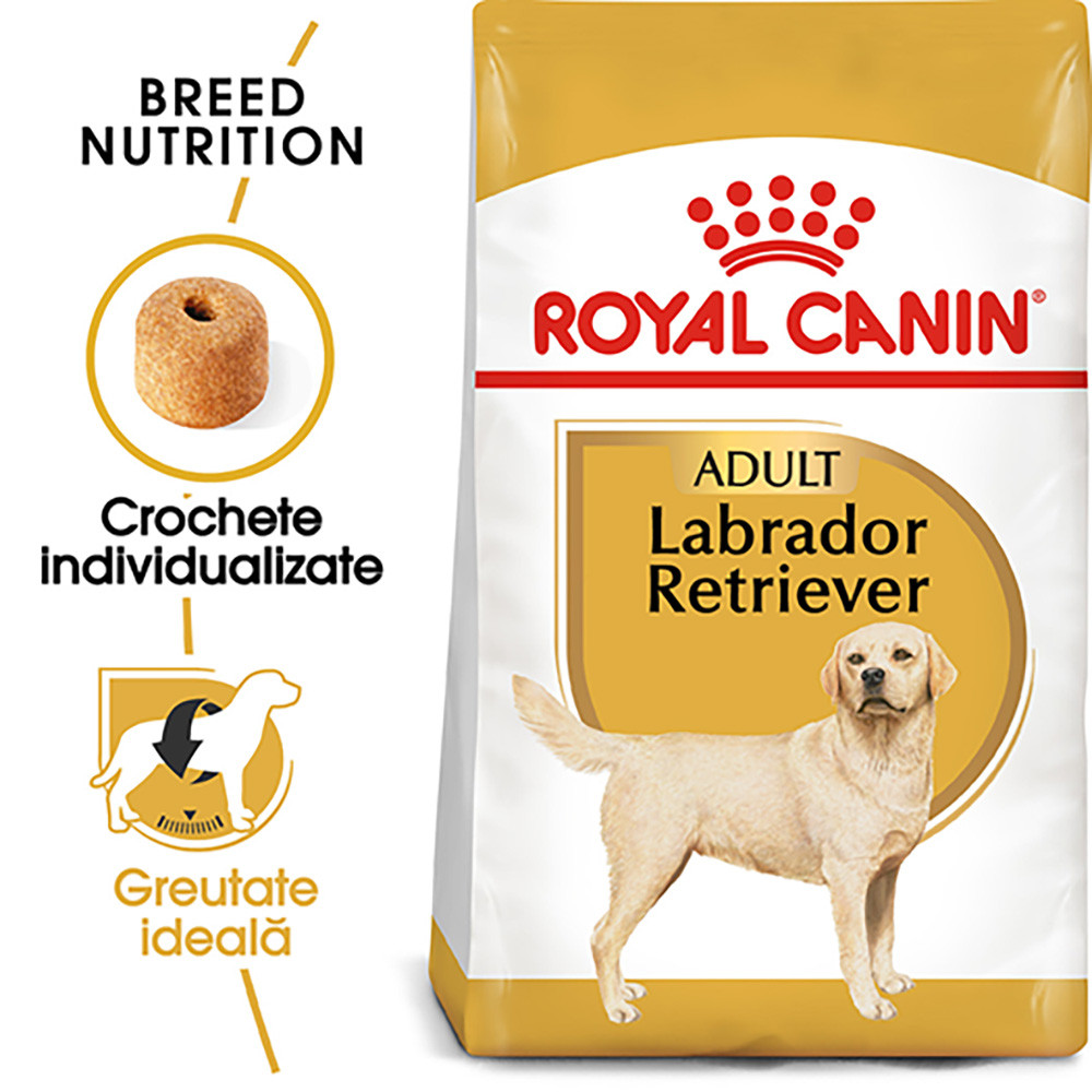 Recomandată câinilor din rasa Labrador Retriever cu vârsta de peste 15 luni, hrana ROYAL CANIN® Labrador Retriever Adult a fost special concepută pentru a îndeplini toate cerințele nutriționale ale câinelui dumneavoastră adult. Are un conținut caloric adaptat, incluzând un nivel crescut de proteine și un aport redus de grăsimi, pentru a ajuta câinele să își mențină greutatea optimă. Blana rezistentă la apă a câinilor Labrador Retriever are o structură ce protejează împotriva frigului. Prin urmare, este esențial ca blana câinelui Labrador Retriever să aibă o condiție optimă.