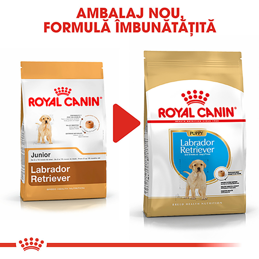 Recomandată puilor cu vârsta de până la 15 luni, hrana ROYAL CANIN® Labrador Retriever Puppy a fost special concepută pentru a îndeplini toate cerințele nutriționale ale puiului dumneavoastră de câine din rasa Labrador Retriever. Conține un complex exclusiv de antioxidanți (inclusiv vitamina E), menit să susțină mecanismele naturale de apărare ale puiului în această perioadă de creștere extrem de importantă.