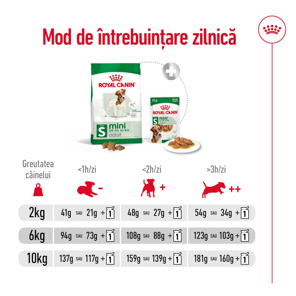 Are un conținut caloric adaptat pentru menținerea greutății optime, oferă nutrienți care susțin oasele sănătoase și puternice, conține vitamine și nutrienți ușor de digerat pentru o absorbție optimă și este îmbogățită cu arome exclusive, potrivite apetitului câinilor de talie mică.