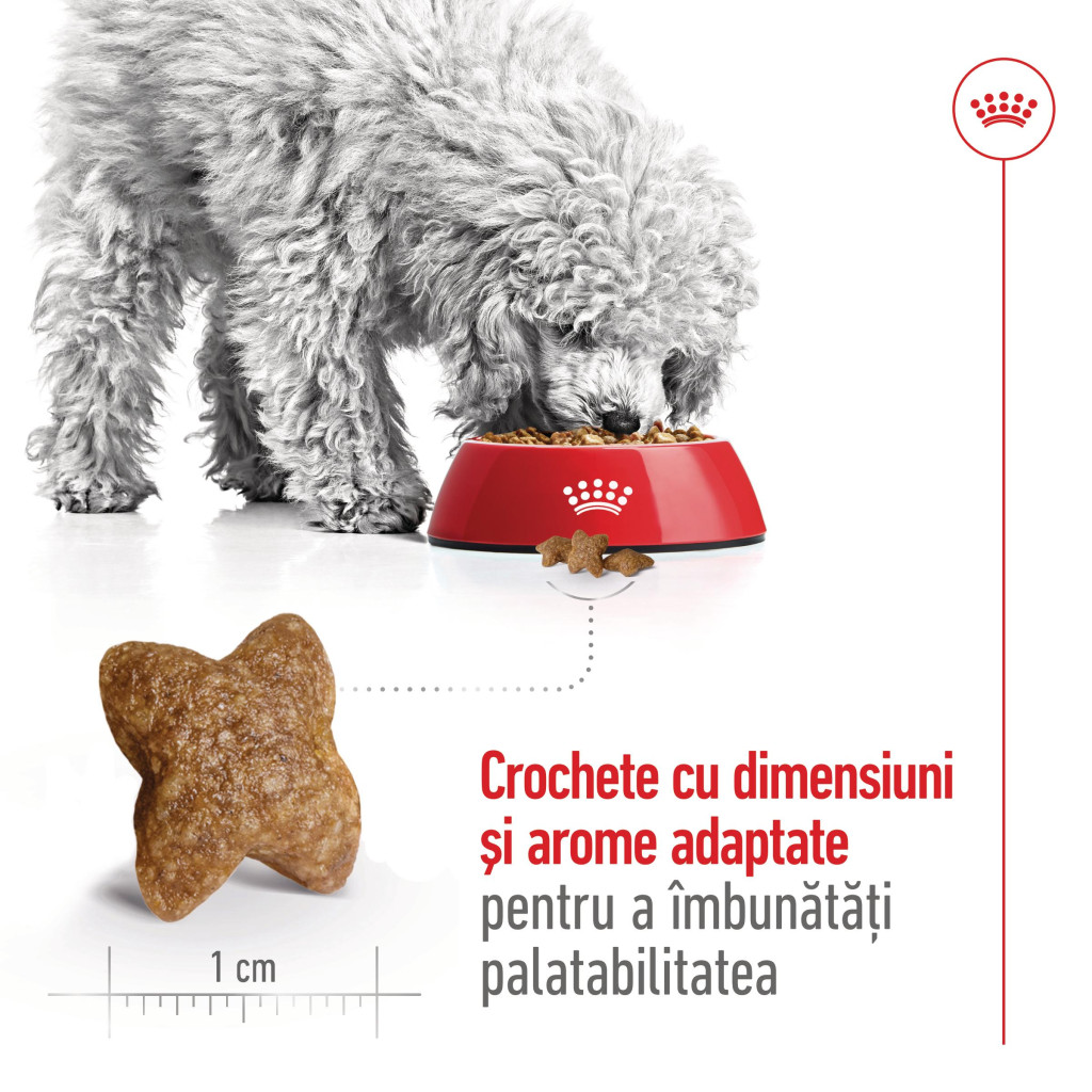 ROYAL CANIN® Mini Adult este o hrană completă şi echilibrată din punct de vedere nutriţional, special creată pentru a răspunde cerinţelor specifice câinilor de talie mică şi pentru a-i susţine pe parcursul etapei de adult.