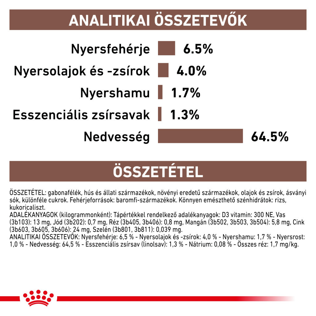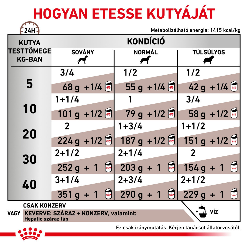 Hrana umedă Royal Canin Hepatic are un conținut moderat de proteine, un nivel ridicat de acizi grași esențiali și carbohidrați ușor digerabili, precum și un conținut scăzut de cupru.