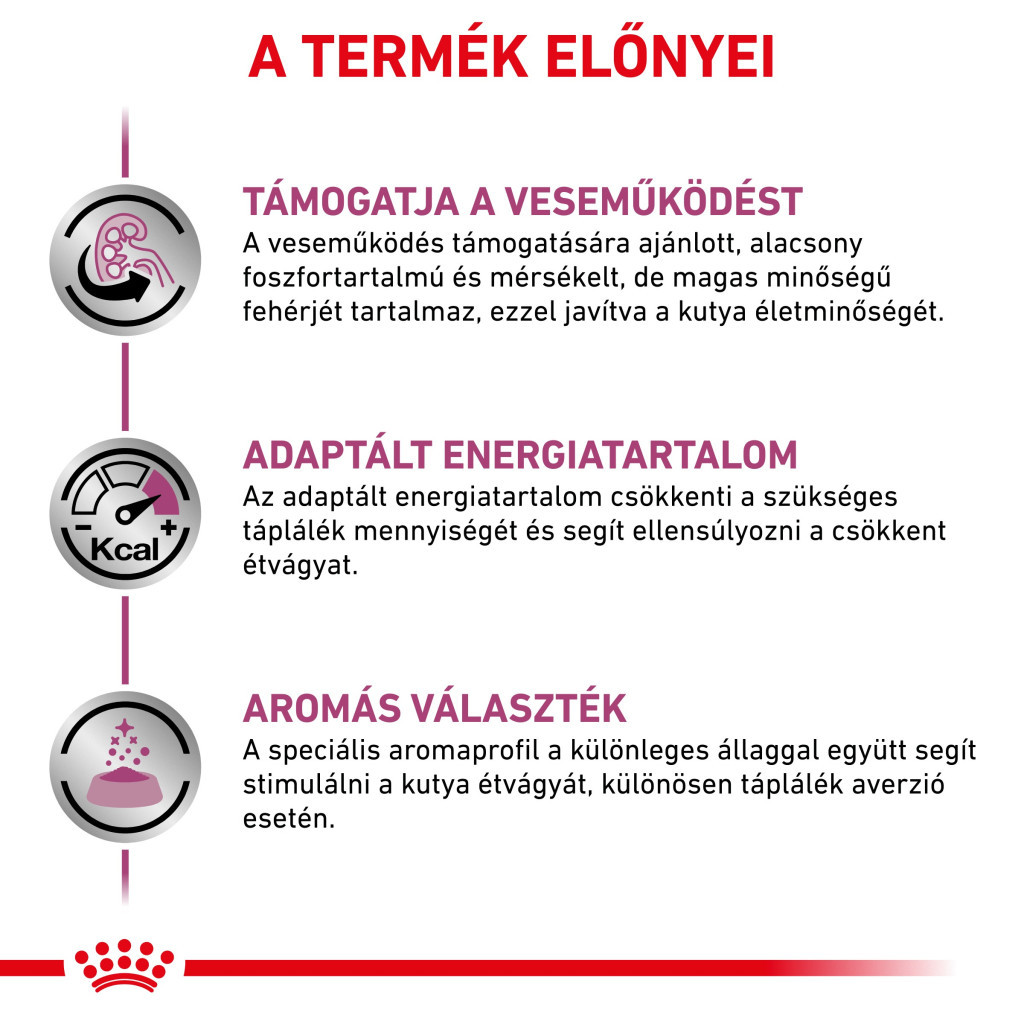 Susține funcția renală – conținut redus de fosfor și proteine calitative, pentru o funcție renală optimă și o calitate mai bună a vieții.