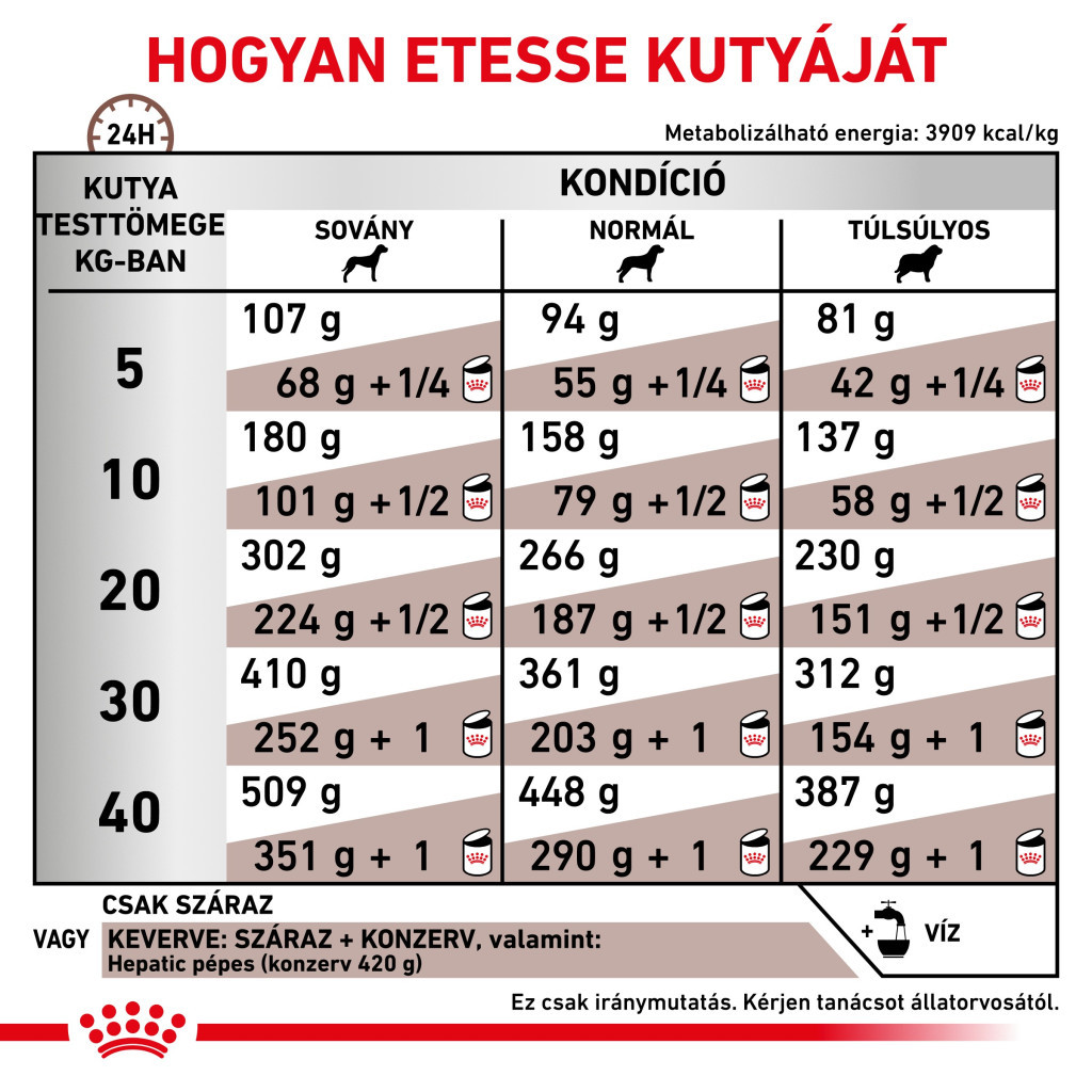 Hrana uscată Royal Canin Hepatic are un conținut moderat de proteine, un nivel ridicat de acizi grași esențiali și carbohidrați ușor digerabili, precum și un conținut scăzut de cupru.