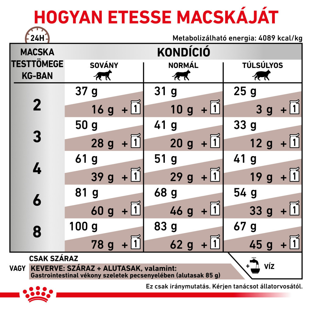 Acest produs face parte din gama veterinară Royal Canin Veterinary Health Nutrition și trebuie administrat doar la recomandarea medicului veterinar. Astfel, animalul dumneavoastră beneficiază de nutriția adecvată stării sale de sănătate. Orice schimbare a dietei trebuie realizată treptat, pe parcursul a 7–10 zile, pentru a evita disconfortul digestiv.