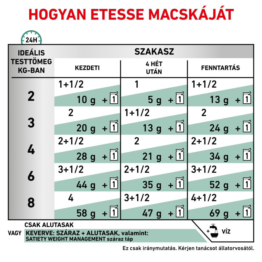 Administrați hrana umedă Satiety Weight Management până la atingerea greutății corporale dorite.