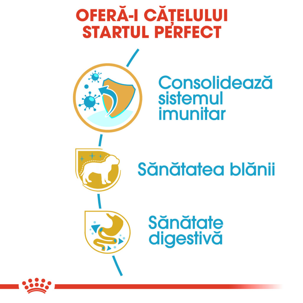 Susține, de asemenea, sănătatea digestivă. Formula include nutrienți cu proteine foarte ușor digestibile, de calitate superioară (L.I.P.) și prebiotice (FOS), pentru menținerea echilibrului florei intestinale.