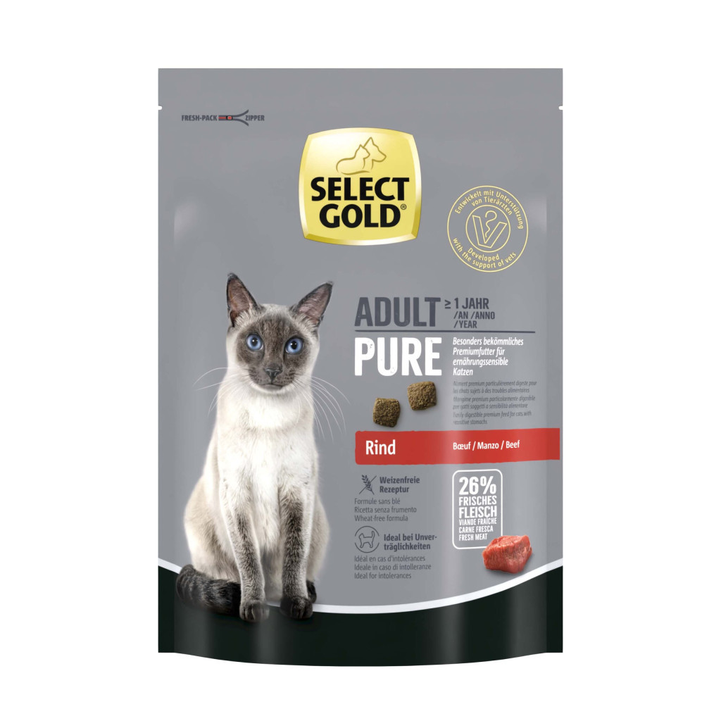Ingrediente: jumări de vită (26,6%), carne proaspătă de vită (26%), orez (23,4%), uleiuri și grăsimi (5,4%), hidrolizat proteic (4%, din drojdie), pulpă de sfeclă uscată (3,5%), făină de orez (3%), lignoceluloză (2,9%), carbonat de calciu (1,2%), monofosfat de calciu (1,1%), clorură de potasiu (0,5%), inulină din cicoare (0,2%), perete celular de drojdie (0,2% – echivalent cu 0,04% mano oligozaharide și 0,038% beta glucani), clorură de sodiu (0,1%), tărâțe de psyllium (0,1%), Yucca schidigera (0,02%).