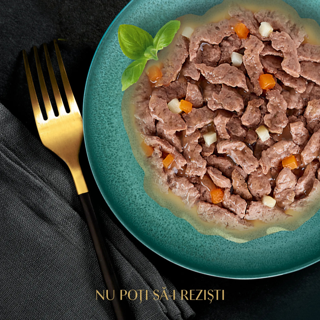 Hrana pentru pisici în sos suculent, preparată cu ingrediente naturale* și de înaltă calitate.