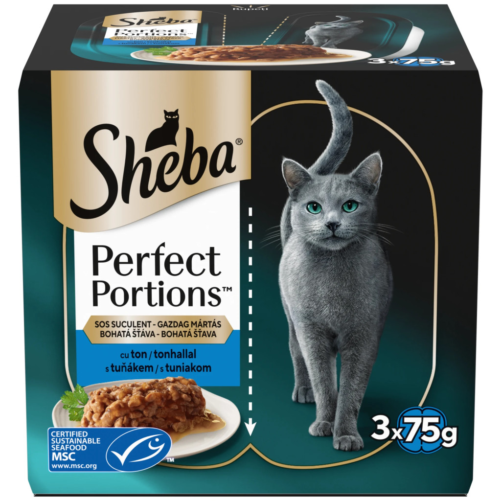 SHEBA® PERFECT PORTIONS™ Hrană umedă pisici adulte, bucăți ton, 2 x 37,5 g