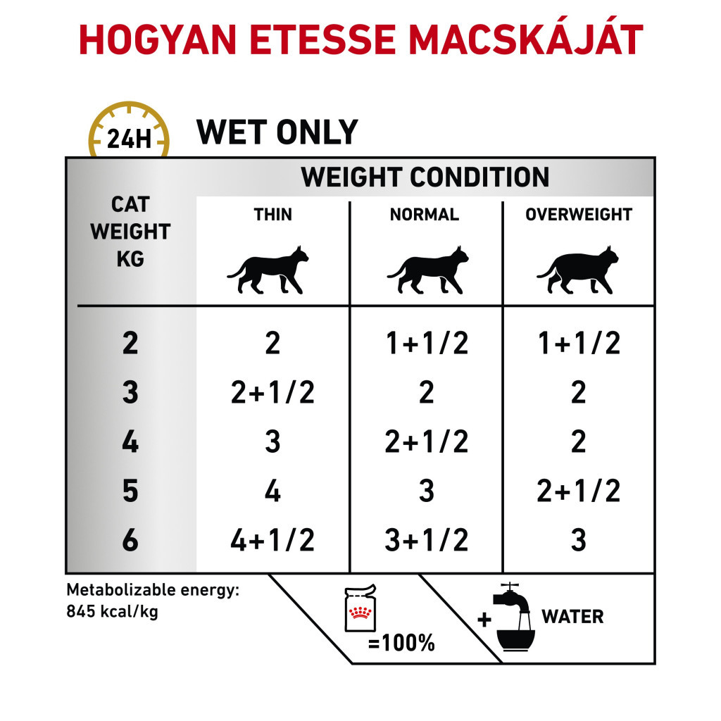 Hrana umedă Royal Canin Urinary S/O loaf are proprietăți care favorizează eliminarea urinei și mențin metastabilitatea acesteia, contribuind la prevenirea formării cristalelor de struvit. Amestecul de nutrienți ajută la dizolvarea cristalelor și a calculilor de struvit deja existenți. Datorită conținutului scăzut de magneziu, hrana contribuie la crearea unui mediu urinar nefavorabil formării calculilor de struvit și oxalat de calciu.