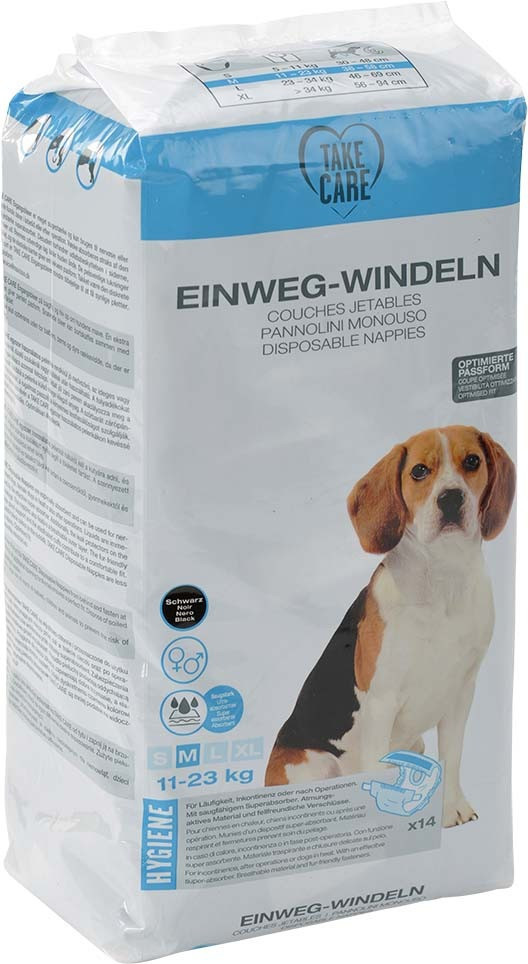 Există multe situații în care câinii au nevoie temporar de un scutec: din cauza nervozității, incontinenței, după o operație sau în perioada de călduri. Scutecele de unică folosință Take Care oferă protecție sigură și confort datorită: