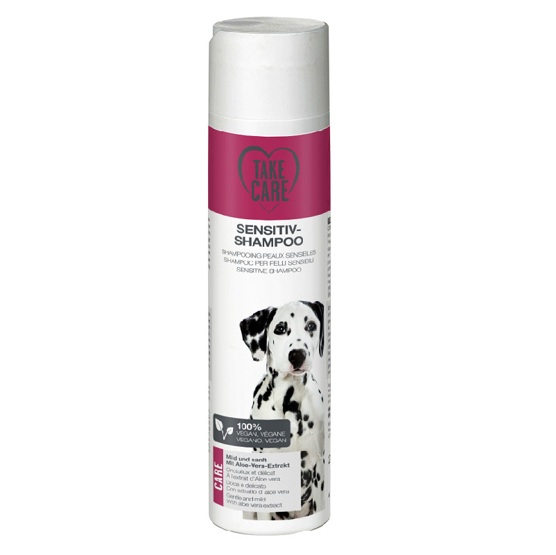 Îngrijirea blănii câinelui dumneavoastră merită cea mai bună calitate. Pentru a elimina mirosurile neplăcute și a reda strălucirea naturală, Take Care a dezvoltat un șampon delicat și eficient. Formula sa de înaltă calitate, îmbogățită cu extract de Aloe Vera, curăță pielea în profunzime, dar blând, fiind perfect adaptată la pH-ul pielii canine.