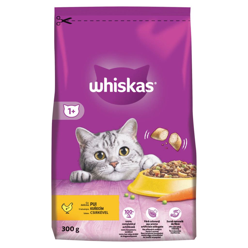 O pisică de 3 kg necesită 45–55 g de hrană uscată zilnic, o pisică de 4 kg necesită 55–65 g de hrană uscată zilnic, o pisică de 5 kg necesită 65–75 g de hrană uscată zilnic. 20 g de hrană uscată pot fi înlocuite de 1 pliculeț de 85 g de hrană umedă WHISKAS. Țineți cont de caloriile care provin din gustări. Cantitățile de hrană sunt date numai ca reguli generale. Ajustați cantitatea de hrană în funcție de vârsta, talia și nivelul de activitate fizică ale pisicii dvs. Împărțiți în porții pentru a fi oferite de-a lungul întregii zile. Introduceți alimentele treptat atunci când schimbați dieta.
