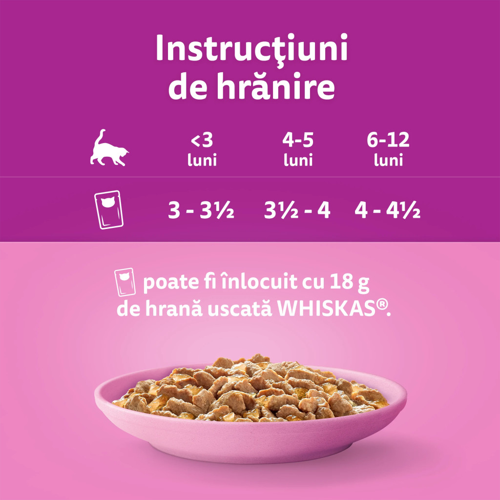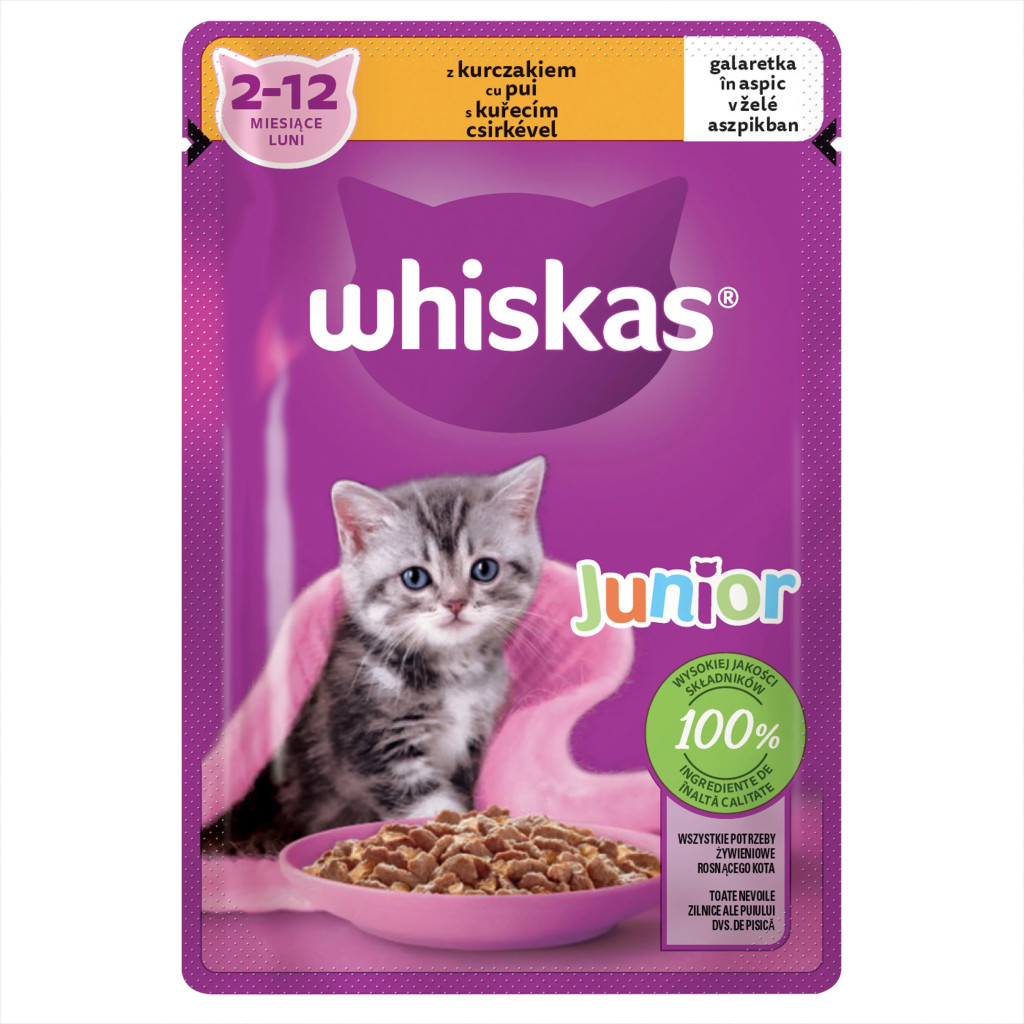 WHISKAS Junior hrană umedă pentru pisici junioare, cu pui în aspic 85 g